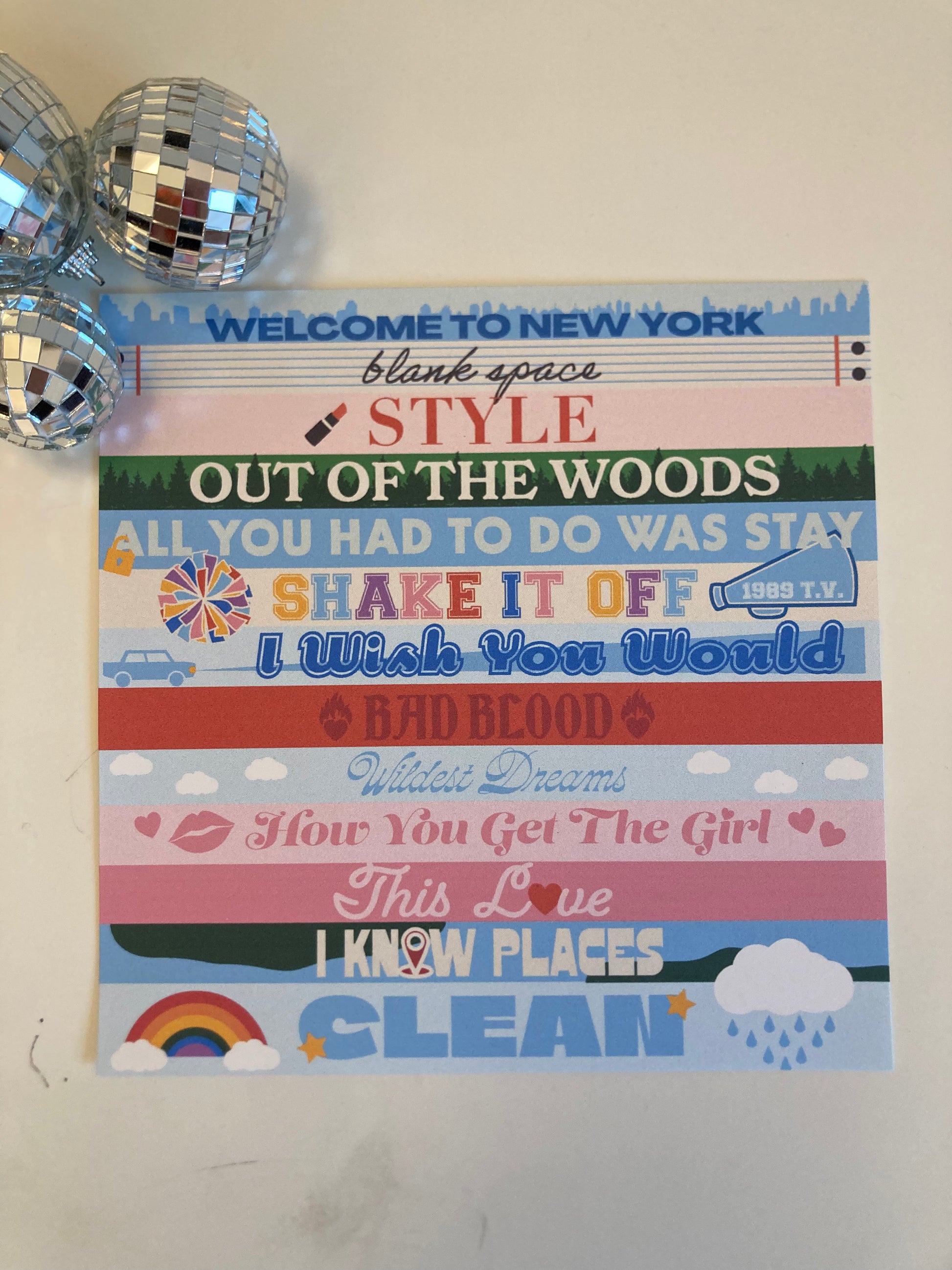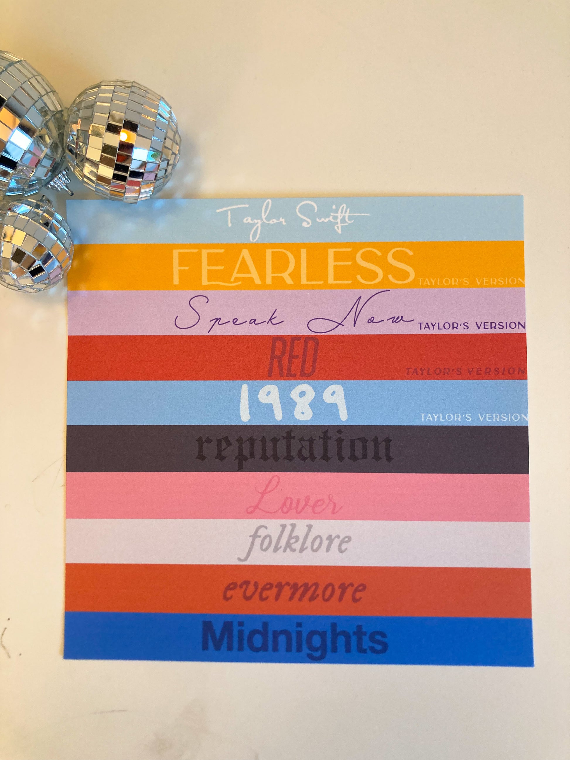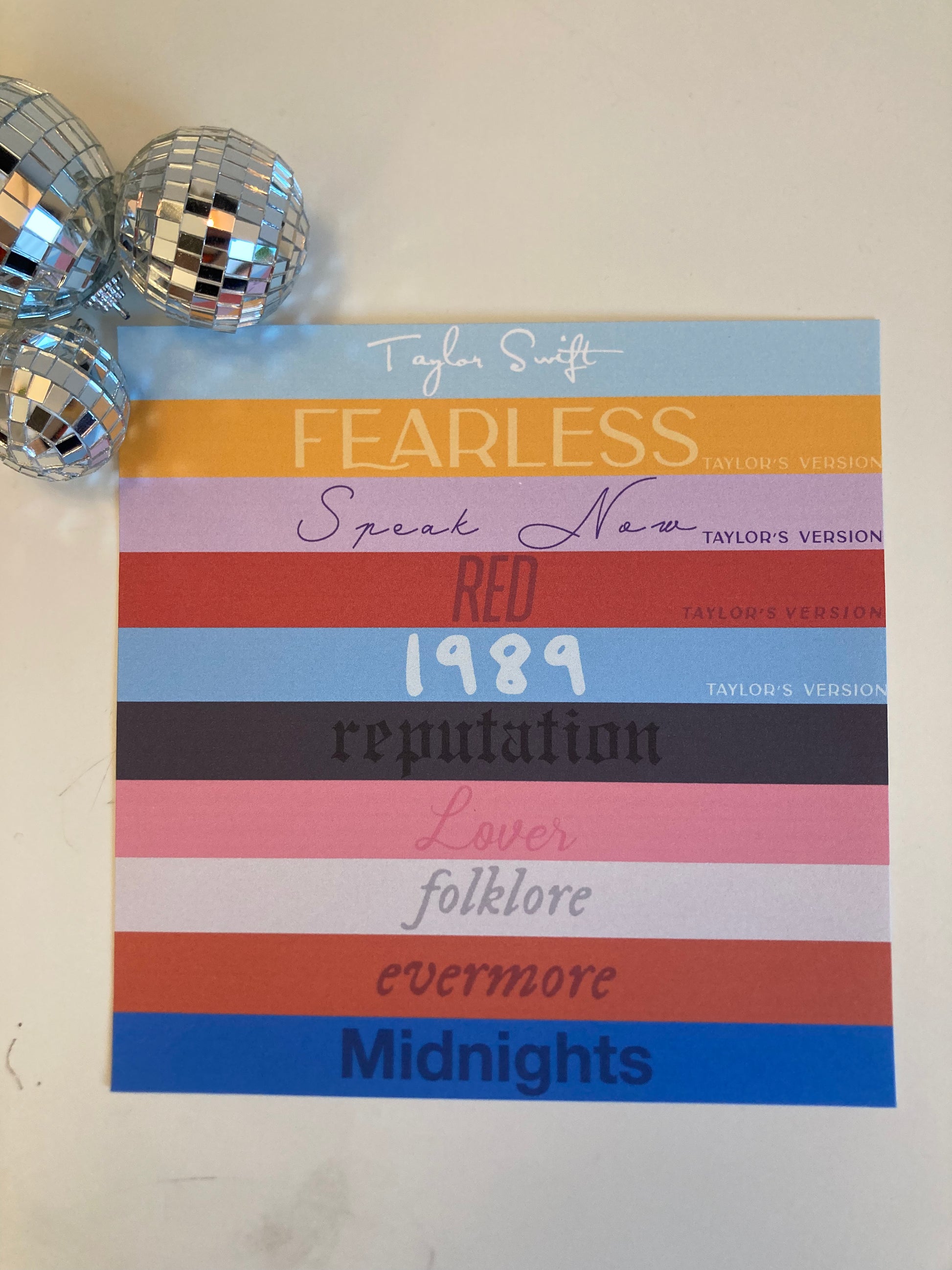 There are 13 eras and 45 prints in total for this collection and I hope to add more over time. These prints measure 8x10 inches except for Paper Rings, and the Taylor Album Cassette Tapes. They are printed on high quality cardstock (110g) using a laser printer. I hope that you enjoy these designs as much as I do! The variants are listed below.
